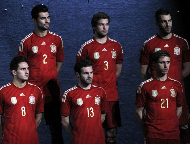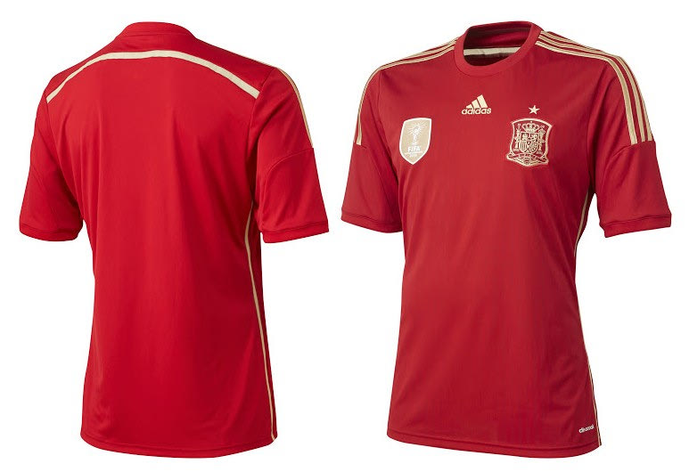 “Φούρια ρόχα” όνομα και πράμα. Η εμφάνιση με την οποία η Ισπανία θα υπερασπιστεί τον τίτλο της στο Μουντιάλ της Βραζιλίας είναι κόκκινη από την κορυφή έως τα νύχια! Με χρυσές πινελιές που παραπέμπουν στην χρυσή εποχή της ομάδας: Πρωταθλήτρια Ευρώπης το 2008 και το 2012 και ενδιάμεσα (2010) Πρωταθλήτρια Κόσμου.
