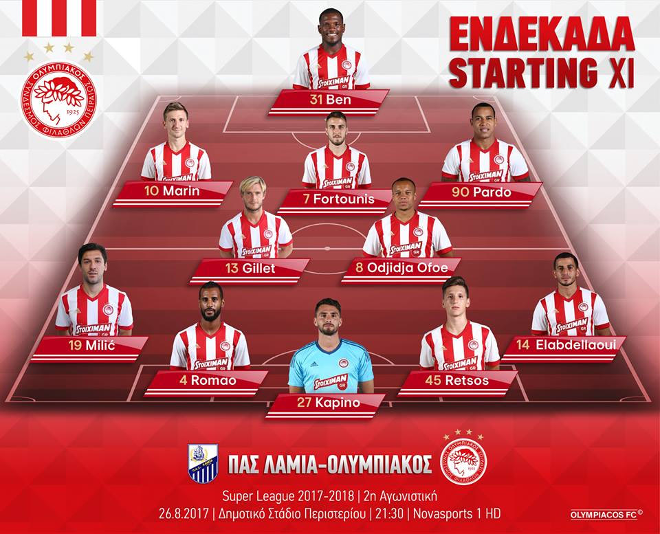 Μετά το 4-1 στην πρεμιέρα απέναντι στην ΑΕΛ, ο Ολυμπιακός θέλει να συνεχίσει νικηφόρα την πορεία του στη Super League. Επόμενος αντίπαλος η Λαμία στο Δημοτικό Γήπεδο του Περιστερίου (21:30) και αυτή είναι η 11άδα που επέλεξε ο Μπέσνικ Χάσι:
