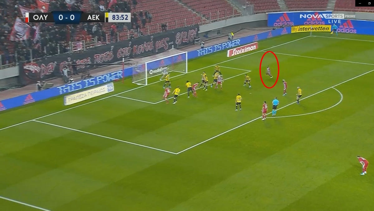 Η ΑΕΚ γνώρισε την ήττα από τον Ολυμπιακό χάρη στο γκολ του Γιαν Εμβιλά, τον οποίο οι "κιτρινόμαυροι" δεν μάρκαραν -όπως αποδεικνύεται- στα κόρνερ και το πλήρωσαν ακριβά.