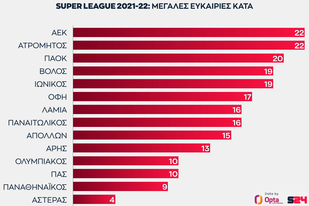 Δείτε στο επόμενο γράφημα τις μεγάλες ευκαιρίες που έχουν δεχθεί οι ομάδες μέχρι τώρα στο πρωτάθλημα.