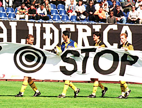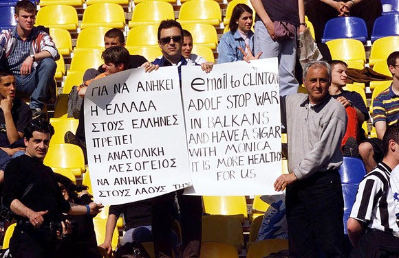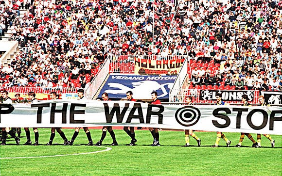 * Με πανό που έγραφε “Nato stop the war. Stop the bombing” (μετάφραση “NATO σταμάτα τον πόλεμο, σταμάτα τους βομβαρδισμούς”) είχαν μπει στον αγωνιστικό χώρο οι δύο ομάδες.