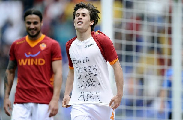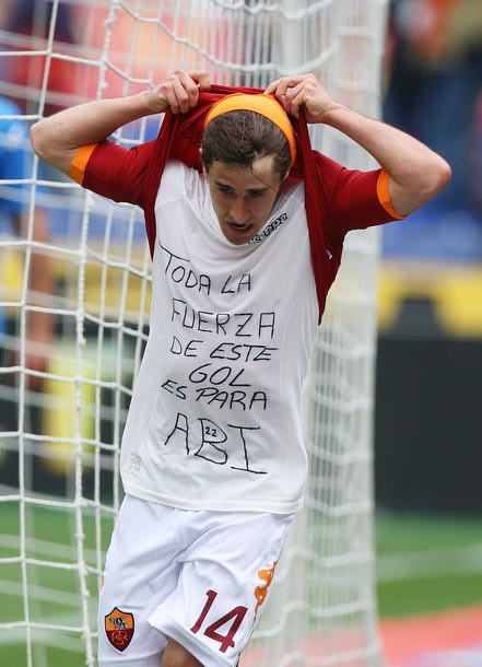 Ο Καταλανός φορ σκόραρε το μεσημέρι της Κυριακής στο “Ολίμπικο” το τέταρτο γκολ της Ρόμα απέναντι στη Νοβάρα (5-2 το τελικό σκορ) και αμέσως μετά την επίτευξη του τέρματος σήκωσε τη φανέλα των “τζαλορόσι” για να δείξει το T-shirt που φορούσε από μέσα.
