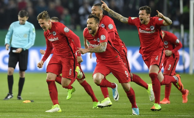Η Άιντραχτ Φρανκφούρτης είναι η πρώτη ομάδα που εξασφάλισε την πρόκριση στον τελικό του γερμανικού κυπέλλου (DFB Pokal), νικώντας 7-6 στην διαδικασία των πέναλτι την Γκλάντμπαχ.