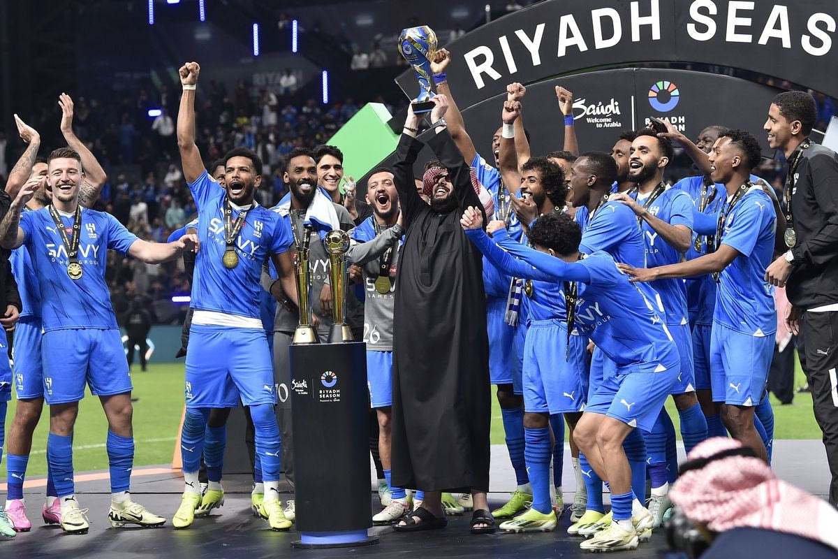 Οι παίκτες της Αλ-Χιλάλ κατά την απονομή του τροπαίου για το Riyadh Season Cup 2024 στην "Κίνγκντομ Αρένα", Ριγιάντ | Πέμπτη 8 Φεβρουαρίου 2024 © 2024/AP IMAGES