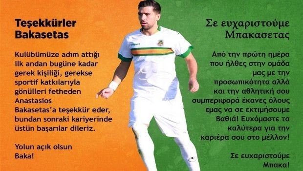 Ο Τάσος Μπακασέτας βρίσκεται στην Τραπεζούντα για την Τράμπζονσπορ και η Αλάνιασπορ τον αποχαιρέτησε από τα social media στα ελληνικά.