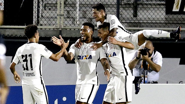 Corinthians forward Leo Jaba, center, celebrates with teammates, including Marquinhos (31), after scoring a goal against Vasco Da Gama during the second half of a Florida Cup soccer match, Wednesday, Jan. 18, 2017, in Orlando, Fla. Corinthians won 4-1. (AP Photo/John Raoux) AP
