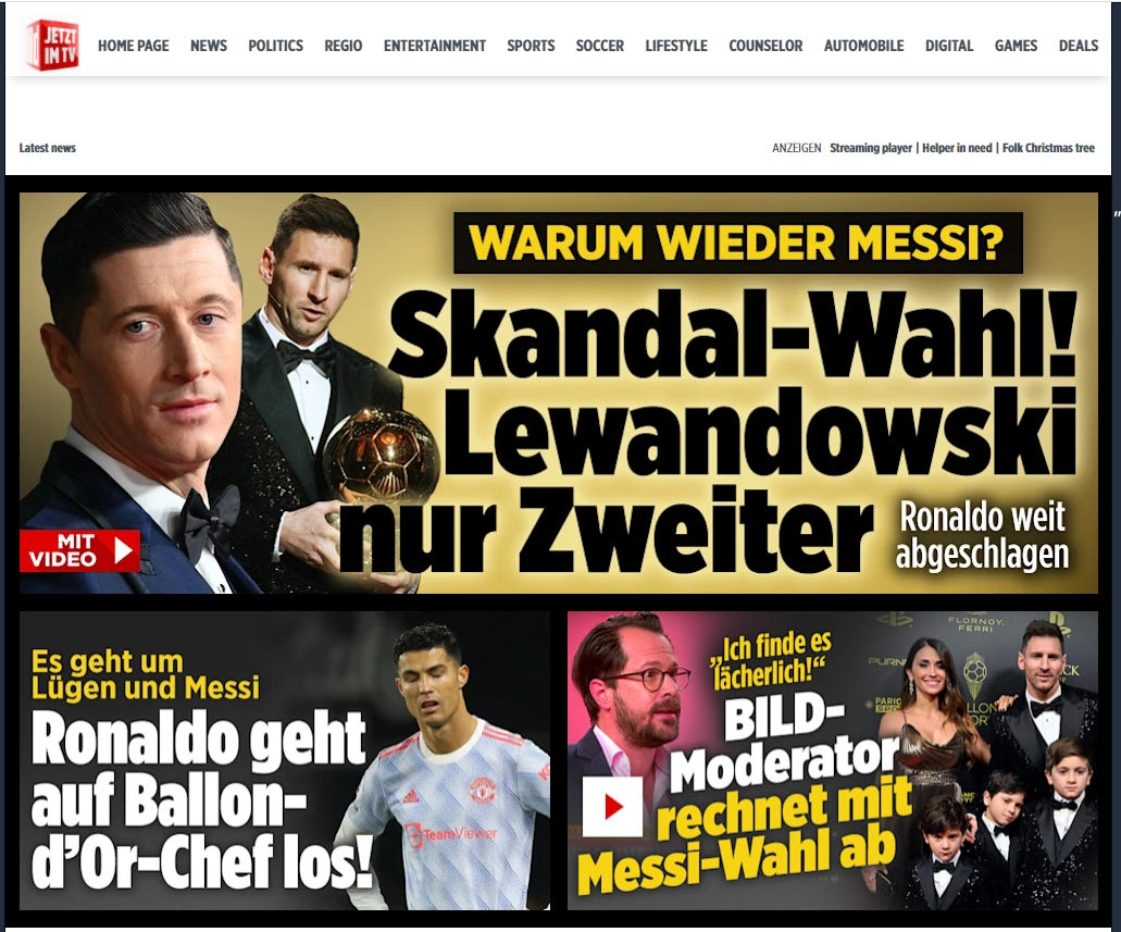 Την ίδια στιγμή ωστόσο, στη Γερμανία θεωρούν άδικο το αποτέλεσμα, με τη γνωστή εφημερίδα Bild, στην ηλεκτρονική της έκδοση να το χαρακτηρίζει “σκάνδαλο”: “Επιλογή-σκάνδαλο, δεύτερος ο Λεβαντόβσκι”, αναφέρει χαρακτηριστικά στον τίτλο του πρώτου θέματός της.