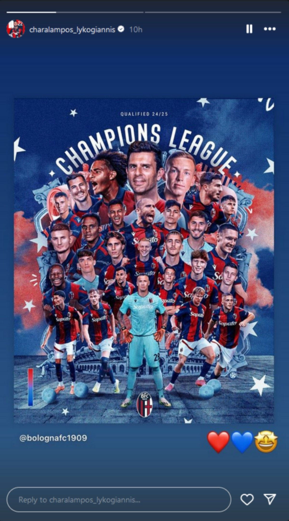 Επιπλέον, αυτή θα είναι η πρώτη συμμετοχή στην Ευρώπη για την Μπολόνια μετά από το 2002 που είχε λάβει μέρος στο Κύπελλο Ιντερτότο (ηττήθηκε με 5-3 σε διπλό τελικό από την Φούλαμ), με τον Μπάμπη Λυκογιάννη να πανηγυρίζει μέσω δύο εντυπωσιακών εικαστικών φωτογραφιών που ανέβασε στον λογαριασμό του στο Instagram.