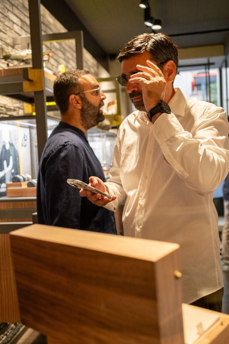 Ο Παντελής Βλαχόπουλος κι ο Θέμης Καίσαρης ήταν εκεί και τους καλωσόρισαν όλους, όπως μόνο αυτοί ξέρουν: με χιούμορ, στιλ και καλή διάθεση. Η Έλενα Δεδούση, Marketing Manager της Breitling Ελλάδας και Κύπρου, μάς μίλησε για το ρολόι, τη μοναδικότητά του και φυσικά τη συνεργασία με τον Χάλαντ.