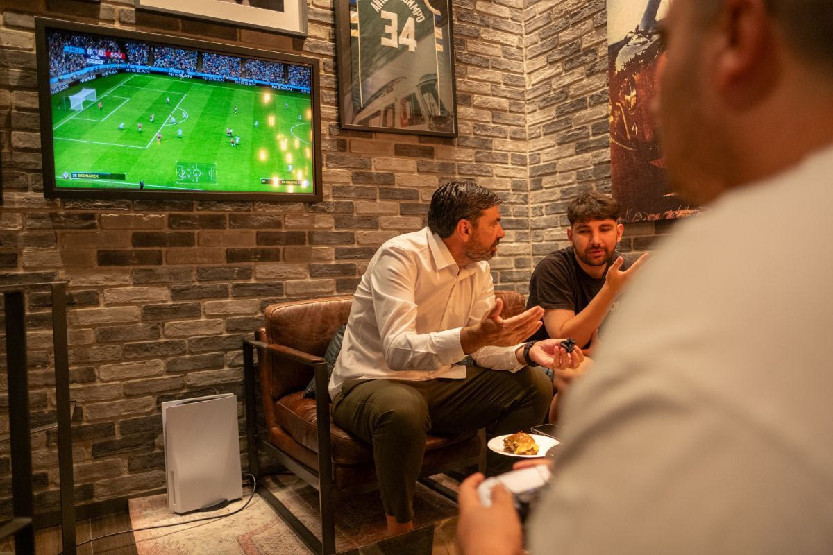 Φυσικά, δεν θα μπορούσαν να λείπουν οι selfies μπροστά στον καθρέφτη του Breitling x Haaland selfie point, ειδικά διαμορφωμένος για την περίσταση. Ακολούθησε το gaming corner της βραδιάς: FIFA στο PS5. Οι συμμετέχοντες έπαιζαν σε ζευγάρια: Μάντσεστερ Σίτι εναντίον Σαουθάμπτον, με στόχο να πετύχουν όσα περισσότερα γκολ γίνεται με σκόρερ τον Χάλαντ.