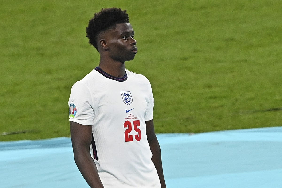 Ο Μπουκαγιό Σακά με τη φανέλα της Αγγλίας στον τελικό του Euro 2020 κόντρα στην Ιταλία @ 2021 Facundo Arrizabalaga/Pool via AP IMAGES