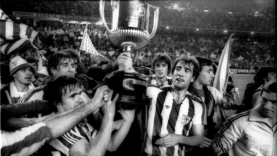 Η Αθλέτικ Μπιλμπάο με 23 τρόπαια βρίσκεται στη δεύτερη θέση της λίστας πίσω από τη Μπαρτσελόνα. Εδώ οι “λέοντες” με το τρόπαιο του 1984.