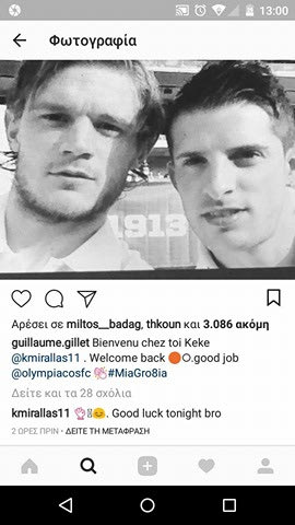 Ο Κέβιν Μιραλάς έγραψε κάτω από τη φωτογραφία που ανέβασε ο Γκιγιόμ Ζιλέ και ευχήθηκε καλή επιτυχία στον ίδιο και στον Ολυμπιακό ενόψει του αγώνα με την ΑΕΛ.