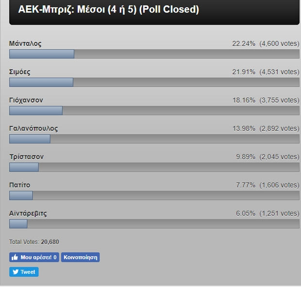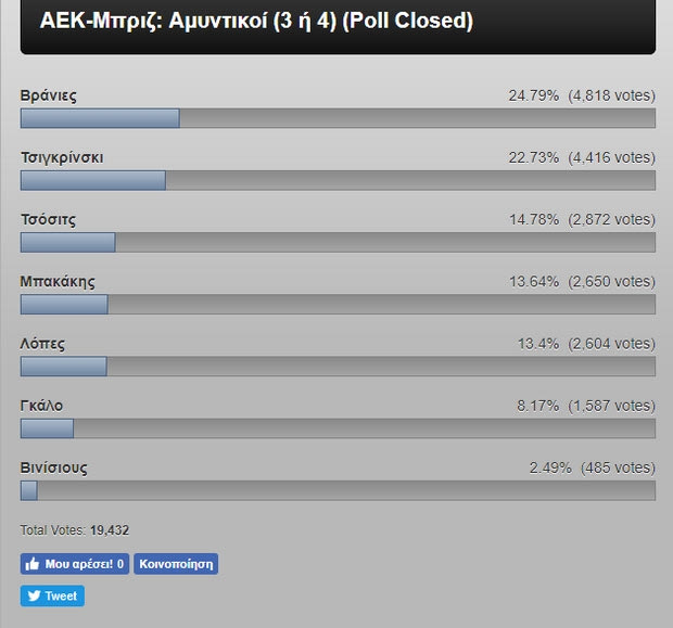 Η ενδεκάδα που επιλέξατε για την ΑΕΚ
