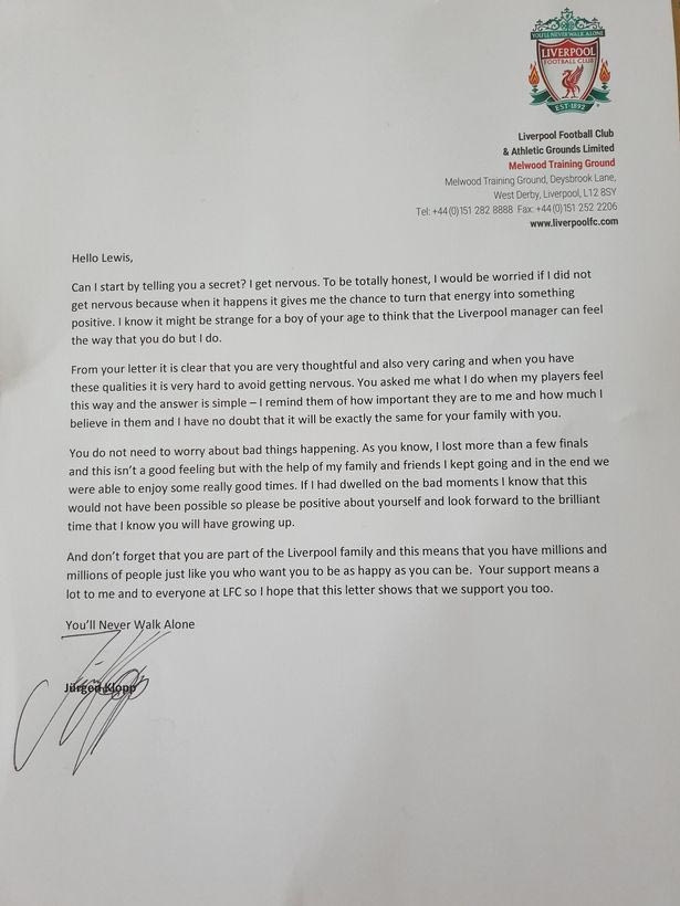 Ο Γιούργκεν Κλοπ, έλαβε επιστολή από έναν 11χρονο οπαδό της Λίβερπουλ, ο οποίος του εξέφρασε το άγχος του πριν ξεκινήσει τη δευτεροβάθμια εκπαίδευση και ο τεχνικός των "κόκκινων" απάντησε, δίνοντας του κάποιες συμβουλές.