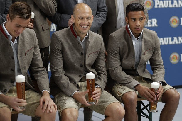 Η Μπάγερν πραγματοποίησε την πατροπαράδοτη φωτογράφιση με μπύρες και σορτσάκια ενόψει του Oktoberfest, με τον Φρανκ Ριμπερί ξανά να κάνει τη... διαφορά (photos).