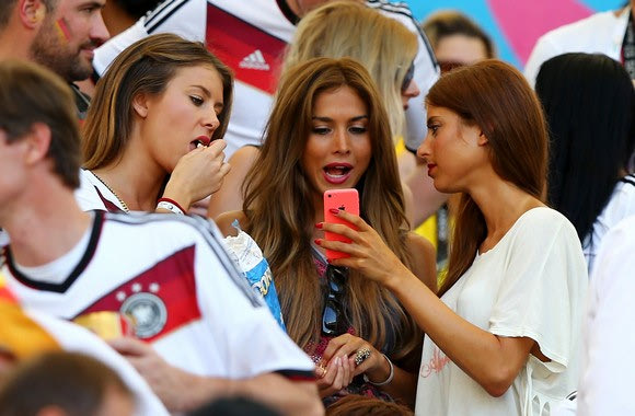 Η Εθνική Γερμανίας κυριάρχησε απόλυτα της Γαλλίας και εκτός γηπέδου. Απόδειξη οι σύντροφοι των Γκέτσε, Σέρλε και Χούμελς που έκαναν διαγωνισμό... καλλιστείων στην κερκίδα (φωτογραφίες).