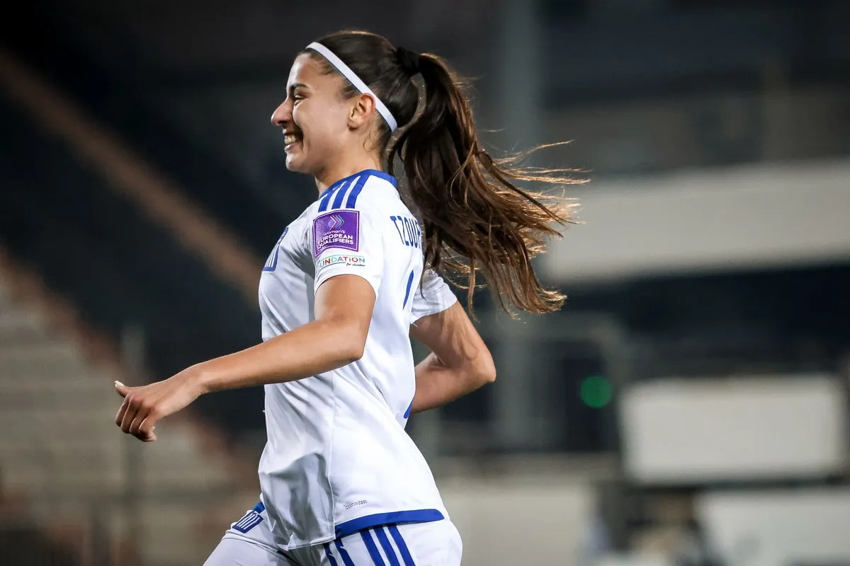 Η ταλαντούχα φορ όχι μόνο ήταν επιδραστική για τη γαλανόλευκη, αλλά πέτυχε και το πρώτο της γκολ με το Εθνόσημο, βάζοντας το κερασάκι στη νίκη με 3-0 επί της Γεωργίας για τα προκριματικά του Μουντιάλ.
