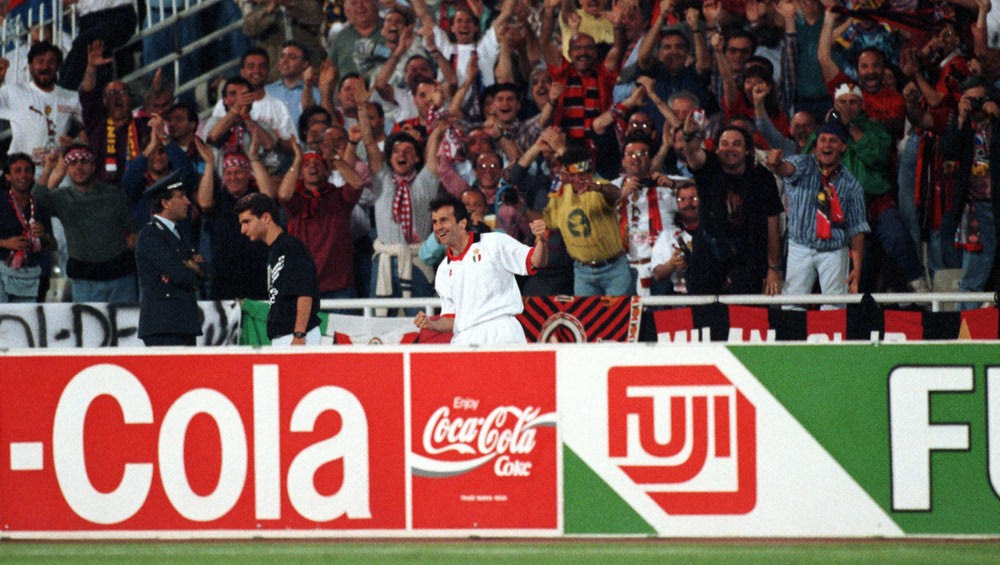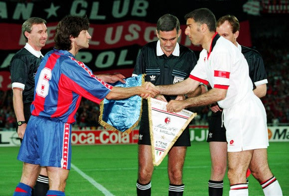 Και τι ματς… Τελικός Champions League στο Ολυμπιακό Στάδιο της Αθήνας απέναντι στην Μπαρτσελόνα του Γιόχαν Κρόιφ, του Ρομάριο, του Στόιτσκοφ, του Γκουαρδιόλα και του Κούμαν, την επονομαζόμενη dream team της εποχής εκείνης, με την Μίλαν του Φάμπιο Καπέλο να σοκάρει όλη την ποδοσφαιρική Ευρώπη με την επιτυχιά της. Ήταν το μεγάλο αουτσάιντερ, όχι μόνο επειδή αντιμετώπιζε μία φαινομενικά τέλεια ομάδα αλλά και επειδή εμφανίστηκε στον τελικό με δύο σημαντικές απουσίες στην άμυνα: αυτές των Φράνκο Μπαρέζι και Αλεσάντρο Κοστακούρτα που ήταν αμφότεροι τιμωρημένοι (τραυματίας ο Φαν Μπάστεν).