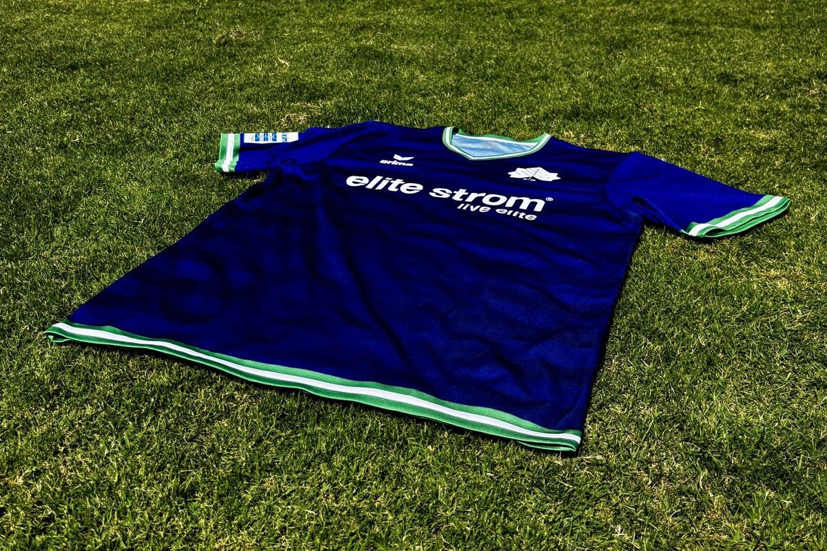 Η Κηφισιά παρουσίασε την πρώτη της φανέλα για τη νέα σεζόν, η οποία ως βασικό χρώμα έχει το σκούρο μπλε, με λευκές και πράσινες λεπτομέρειες.