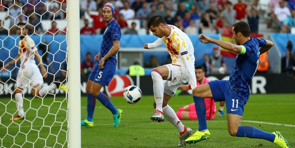 Ο Άλβαρο Μοράτα είχε πετύχει δύο γκολ στην Τουρκία και στο 7ο λεπτό της αναμέτρησης με την Κροατία άνοιξε το σκορ με το 3ο του τέρμα στην διοργάνωση.