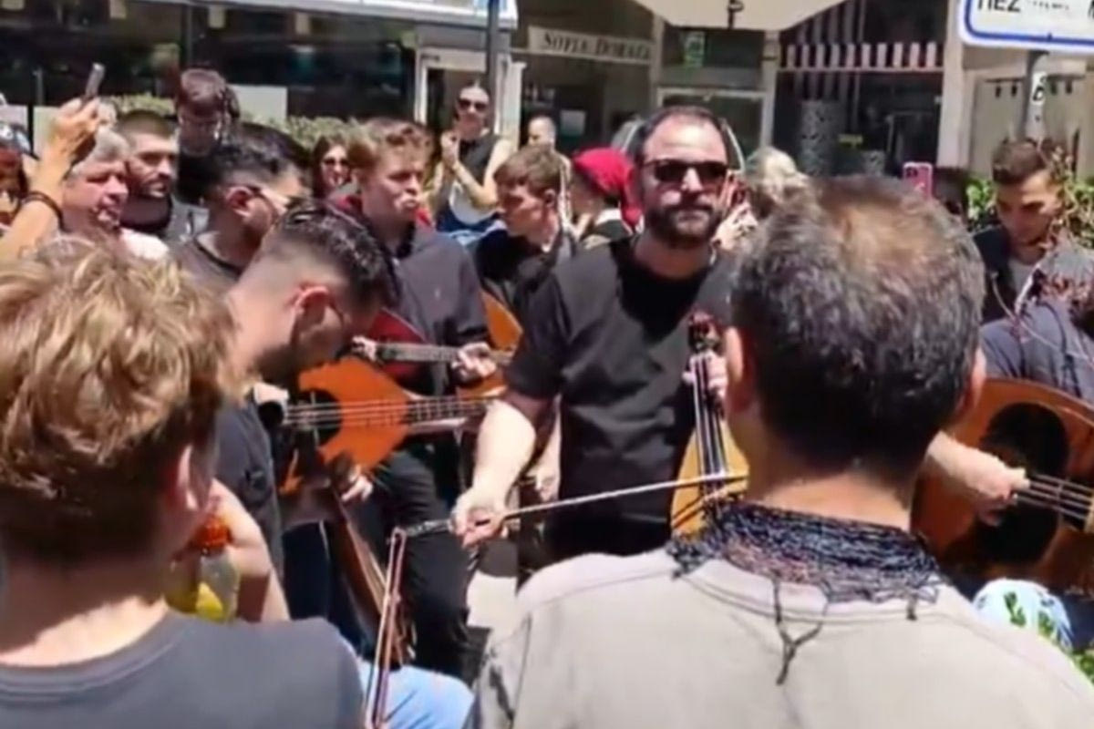 Οι Κρητικοί έχουν συγκεντρωθεί βάσει προγραμματισμού στο Μαρούσι και έχουν αρχίσει ήδη το γλέντι τους. “Στην Αθήνα ήρθαμε οι γιοι του Ψηλορείτη. Ώπα, ώπα. Το κύπελλο να πάρουμε, να φέρουμε στην Κρήτη“.
