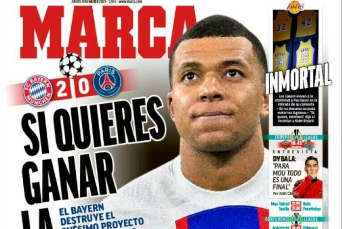 Φωτιά πήραν τα ισπανικά Μέσα μετά τον αποκλεισμό της Παρί από το Champions League, με το πρωτοσέλιδο της μαδριλένικης MARCA να καλεί τον Κιλιάν Εμπαπέ στη Ρεάλ αν θέλει να στεφθεί πρωταθλητής Ευρώπης.
