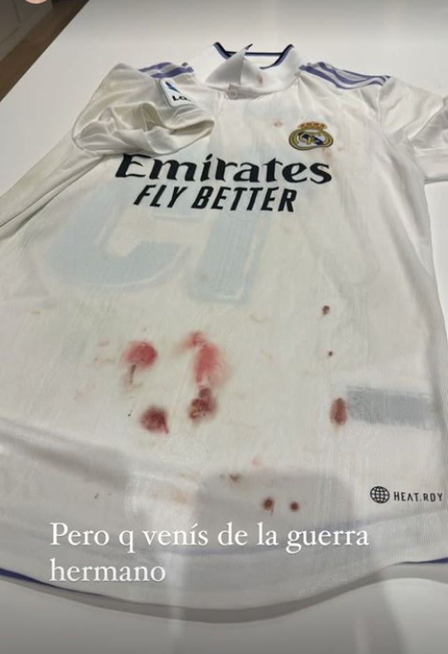Η δημοσιογράφος και σύντροφος του Φεντερίκο Βαλβέρδε, Μίνα Μπονίνο, θέλησε να τρολάρει τον μέσο της Ρεάλ και δημοσίευσε τη ματωμένη φανέλα του από το ντέρμπι της Μαδρίτης με την Ατλέτικο, σχολιάζοντας περιπαικτικά ότι έρχεται από τον πόλεμο.