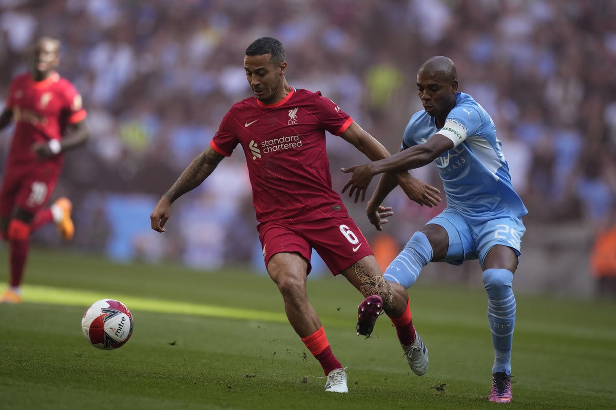 Μονομαχία των Τιάγκο και Φερναντίνιο σε ματς της Λίβερπουλ με την Μάντσεστερ Σίτι για το FA Cup | 16 Απριλίου 2022 @2022 Frank Augstein/AP IMAGES