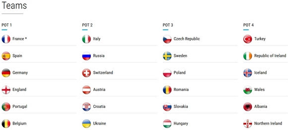 - Αλβανία, Ισλανδία, Ουαλία και Βόρειος Ιρλανδία παίρνουν μέρος για πρώτη φορά στα τελικά