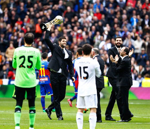 Η ομάδα μπάσκετ της Ρεάλ Μαδρίτης παρουσίασε το Κύπελλο Ισπανίας στο κοινό του “Μπερναμπέου”. Λίγο πριν ξεκινήσει το ματς με την Έλτσε και ενώ οι δυο ομάδες βρίσκονταν ήδη στο γήπεδο, οι παίκτες της μπασκετικής Ρεάλ έκαναν την είσοδό τους στον αγωνιστικό χώρο με επικεφαλής τον αρχηγό Φελίπε Ρέγιες που κρατούσε στα χέρια του το τρόπαιο. Οι Κυπελλούχοι πριν δυο εβδομάδες στη Μάλαγα με το εκπληκτικό τρίποντο του Σέρχιο Γιουλ στο τελευταίο δευτερόλεπτο, χειροκροτήθηκαν θερμά από τις κερκίδες του “Σαντιάγο Μπερναμπέου” (ανάμεσά τους και ο Γιάννης Μπουρούσης).