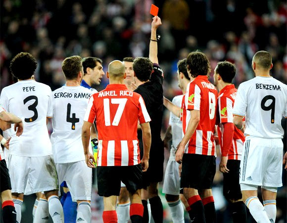 Ο Κριστιάνο Ρονάλντο αποβλήθηκε στο ματς της Ρεάλ με την Αθλέτικ στο “Σαν Μαμές”, φτάνοντας έτσι τις 4 στην καριέρα του με τους “μερένγκες”. Ήταν η τρίτη αποβολή του Πορτογάλου σε αγώνα πρωταθλήματος, μετά τις δυο με Αλμερία και Μάλαγα στην πρώτη του σεζόν στη Μαδρίτη. Αυτό που απασχολεί πλέον τη Ρεάλ, είναι η έκταση της τιμωρίας του CR7, αφού από αυτήν εξαρτάται αν θα παίξει ή όχι στα ματς Κυπέλλου με την Ατλέτικο.