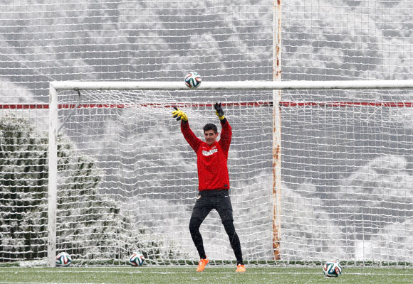 Το πρωί της Δευτέρας βρήκε χιονισμένη τη Μαδρίτη και οι παίκτες της Ατλέτικο προπονήθηκαν σε λευκό ντεκόρ! Εδώ βλέπουμε τον Κουρτουά στο προπονητικό κέντρο της ομάδας, στο “Θέρο ντελ Εσπίνο” της Μαχανταόντα, στα περίχωρα της ισπανικής πρωτεύουσας.