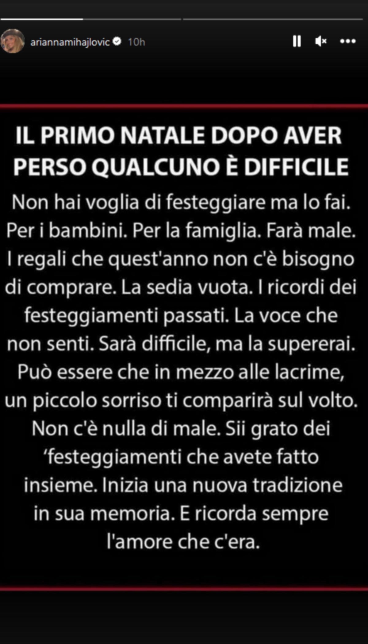 Με αφορμή μάλιστα τα πρώτα Χριστούγεννα χωρίς εκείνον στο πλευρό της, η σύζυγός του και μητέρα των πέντε παιδιών του, Αριάννα, προχώρησε σε μία άκρως συγκινητική ανάρτησή του στον προσωπικό λογαριασμό της στο Instagram, αφιερωμένη στον άνθρωπο με τον οποίο μοιράστηκε αμέτρητες υπέροχες στιγμές στη ζωή της.