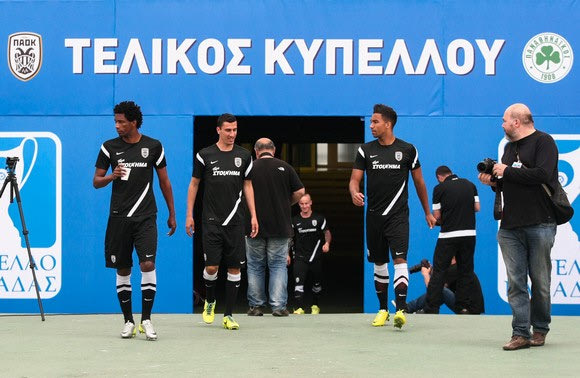 Λίγο πριν τις 20:00 αποχώρησε από το ΟΑΚΑ η αποστολή του ΠΑΟΚ, έχοντας ολοκληρώσει την προετοιμασία για τον τελικό του Σαββάτου (26/4). Τα δύο πούλμαν που μετέφεραν την αποστολή (το ένα είχε τους διοικούντες του ΠΑΟΚ και το άλλο μετέφερε την ομάδα) ήταν περικυκλωμένο από μηχανές της Αστυνομίας και ένα ΙΧ, ενώ τα πούλμαν ακολουθούσε και ένα λεωφορείο των ΜΑΤ.