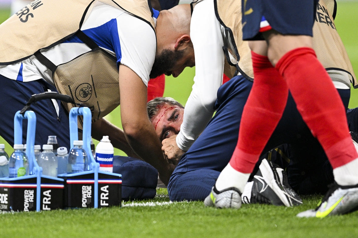 Ο Γκριεζμάν μετά το χτύπημα που δέχθηκε από τον Μαυροπάνο