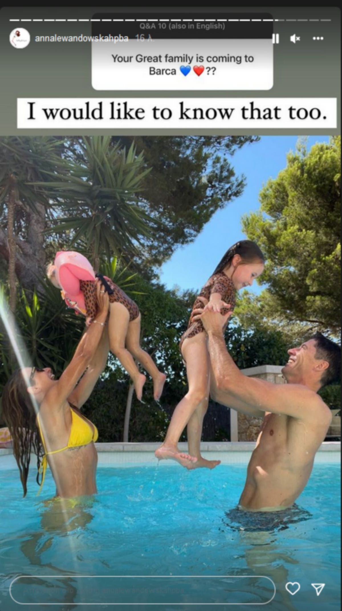 “Η σπουδαία οικογένειά σας θα έρθει στην Μπάρτσα;”, ήταν το ερώτημα που της έθεσε ένας ακόλουθός της στο Instagram, με την ίδια να παίρνει την ασίστ και να δίνει την ακόλουθη απάντηση-μήνυμα προς πάσα κατεύθυνση: “Θα ήθελα και εγώ να το μάθω”.