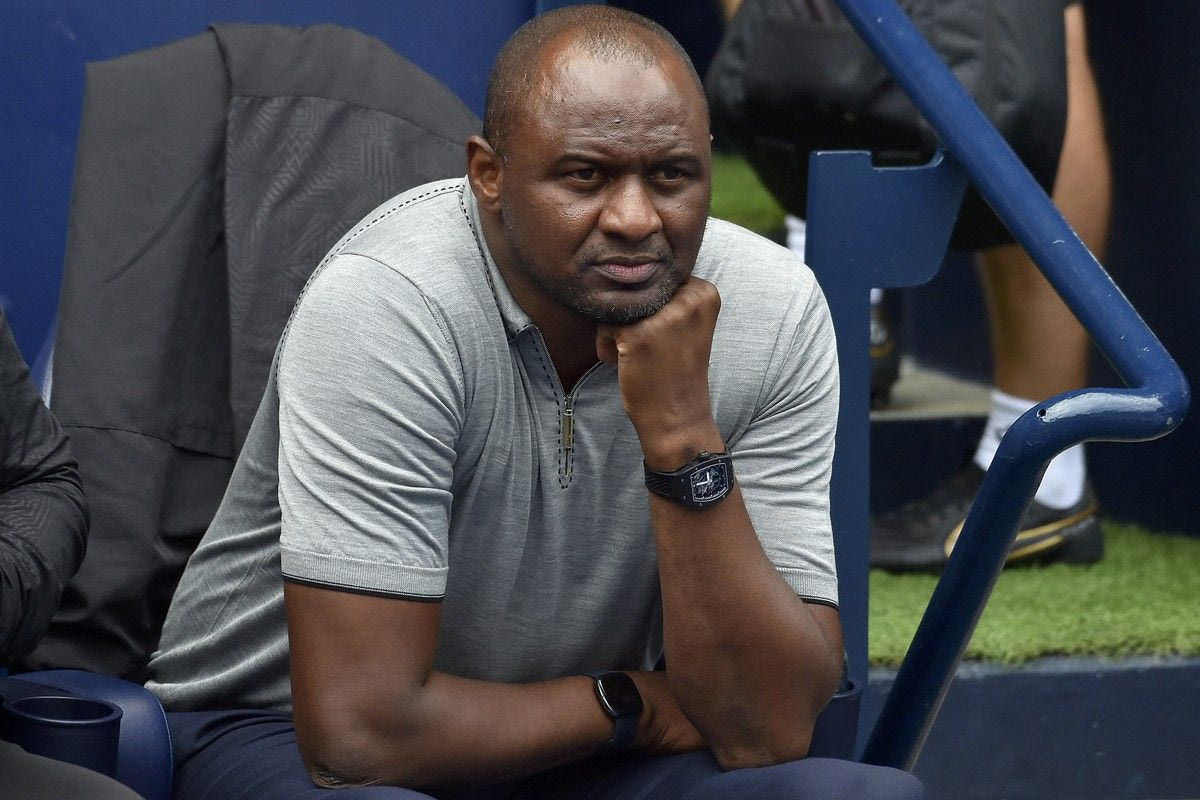 Crystal Palace's head coach Patrick Vieira sits on the bench during the English Premier League soccer match between Manchester City and Crystal Palace at Etihad stadium in Manchester, England, Saturday, Aug. 27, 2022. (AP Photo/Rui Vieira)