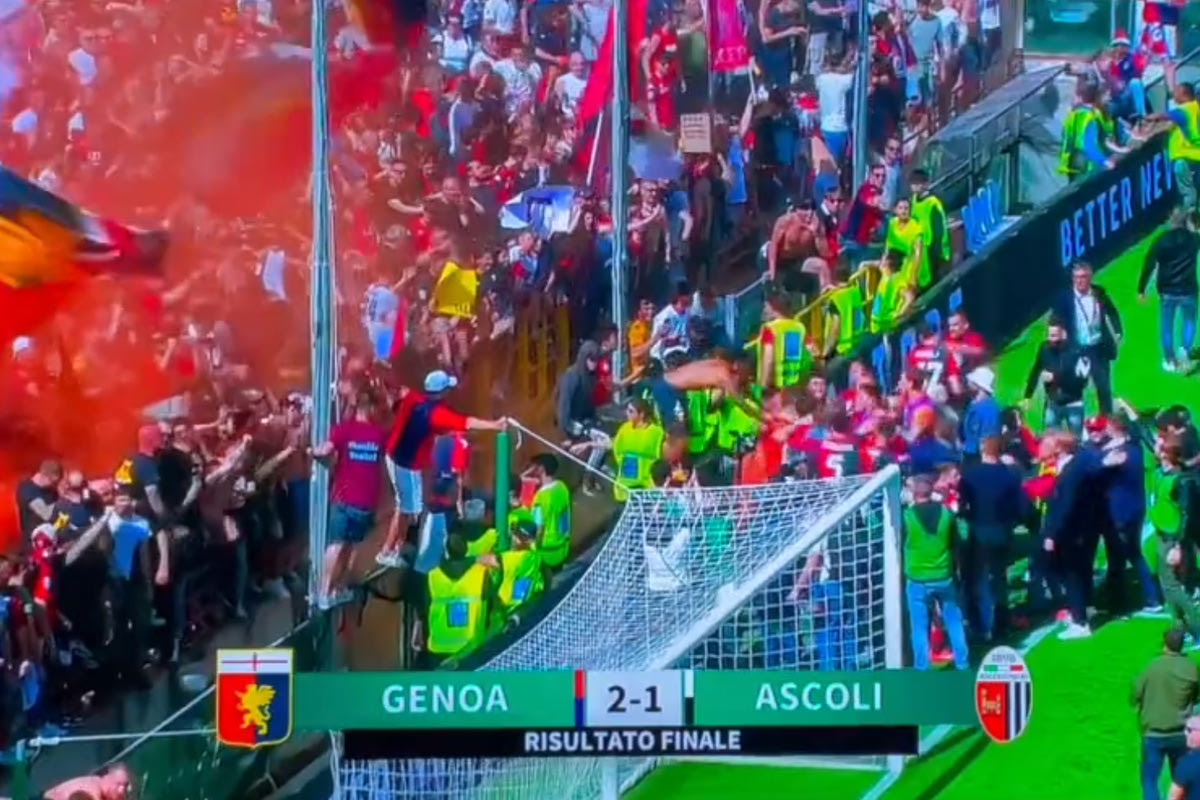 Όπως ήταν φυσικό το Λουίτζι Φεράρις “κάηκε” με τους ποδοσφαιριστές να πανηγυρίζουν έντονα με τους οπαδούς την επιτυχία της Τζένοα. Θυμίζουμε πως την άνοδό της έχει εξασφαλίσει ήδη η Φροζινόνε, η οποία είναι πρώτη στη Serie B με 74 βαθμούς.