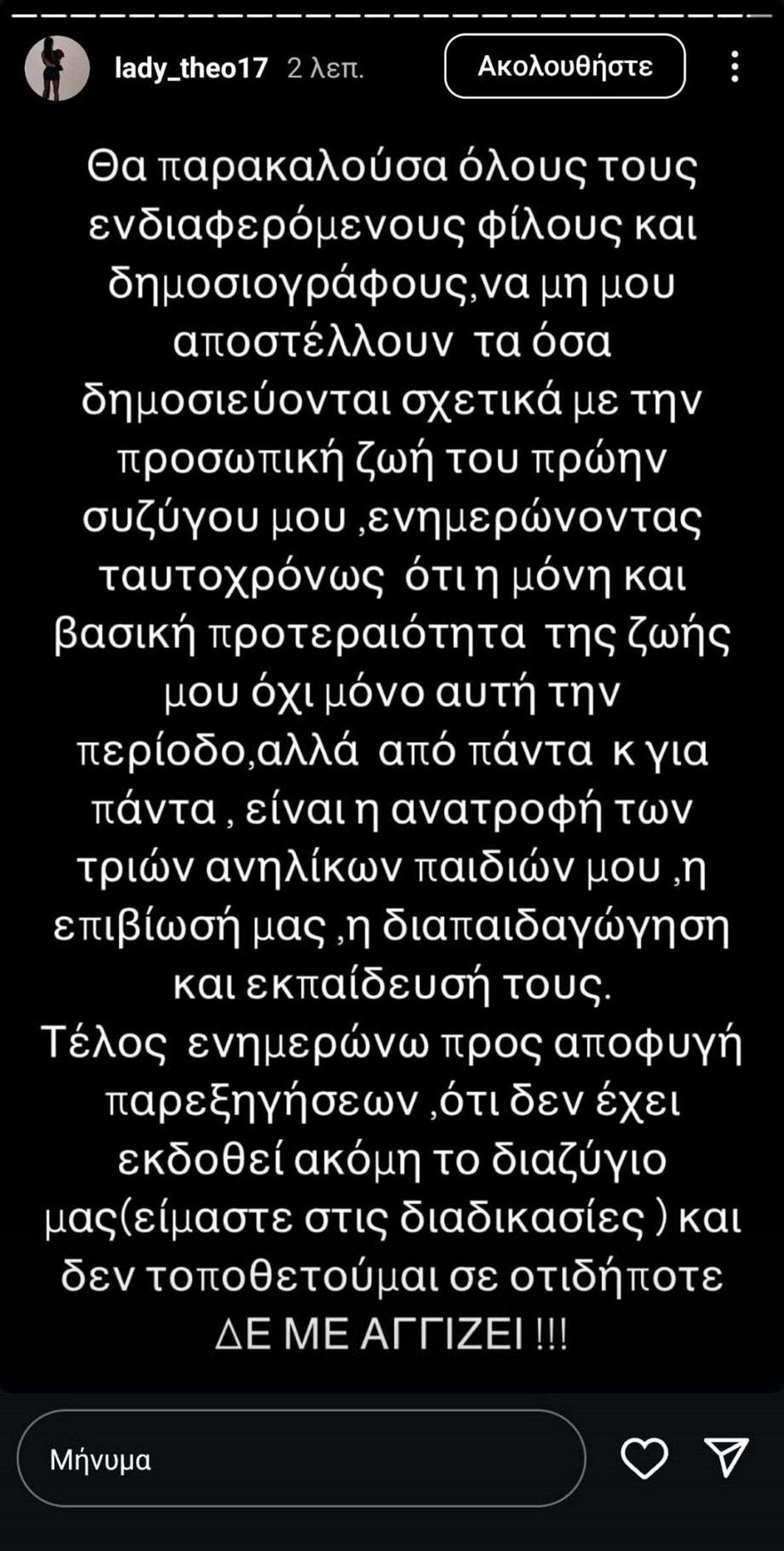 Ωστόσο, η ανάρτησή του προκάλεσε αρκετές αντιδράσεις, με τη Ζέτα Θεοδωροπούλου να τοποθετείται δημόσια μέσω Instagram.