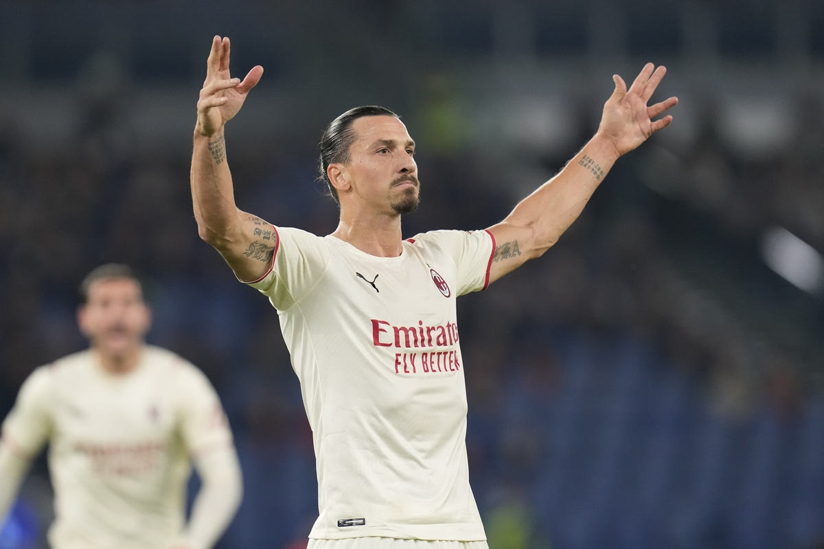 Ο Ζλάταν Ιμπραχίμοβιτς της Μίλαν πανηγυρίζει γκολ που σημείωσε κόντρα στη Ρόμα για τη Serie A 2021-2022 στο "Ολίμπικο", Ρώμη | Κυριακή 31 Οκτωβρίου 2021