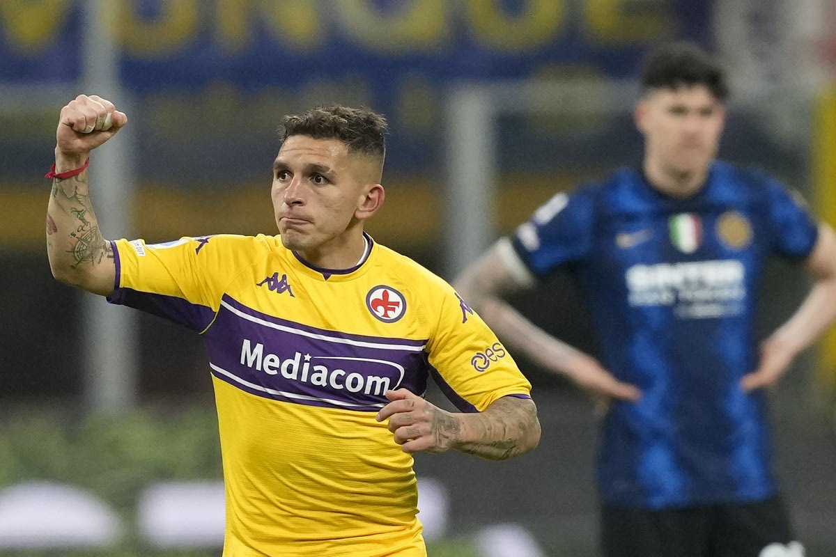 Ο Λούκας Τορέιρα πανηγυρίζει γκολ του με την Φιορεντίνα κόντρα στην Ίντερ | 19 Μαρτίου 2022 @2022 Antonio Calanni/AP IMAGES