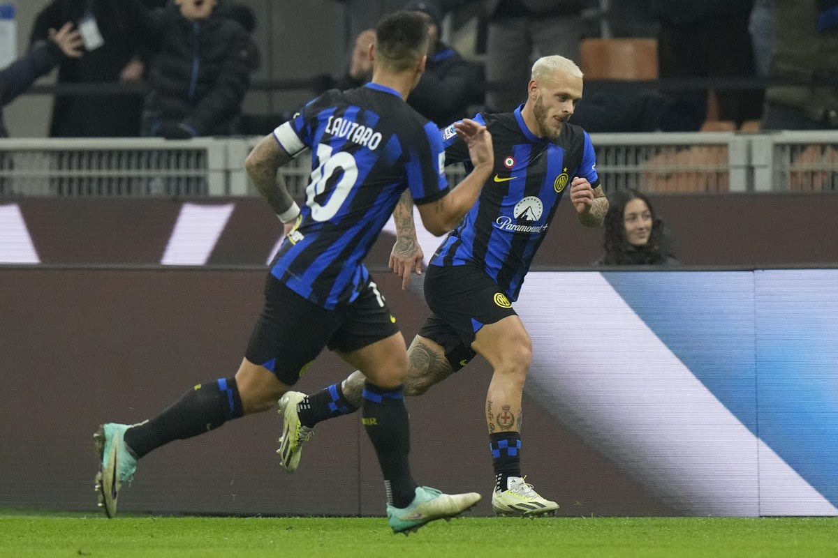 Ο Φεντερίκο Ντιμάρκο πανηγυρίζει γκολ με τη φανέλα της Ίντερ κόντρα στην Φροζινόνε για την Serie A | 12 Νοεμβρίου 2023