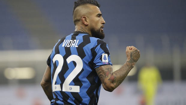 Ο Αρτούρο Βιδάλ πανηγυρίζει γκολ του με την φανέλα της Ίντερ κόντρα στην Γιουβέντους στην Serie A ⓒ 2021 Φωτογράφος/Associated Press