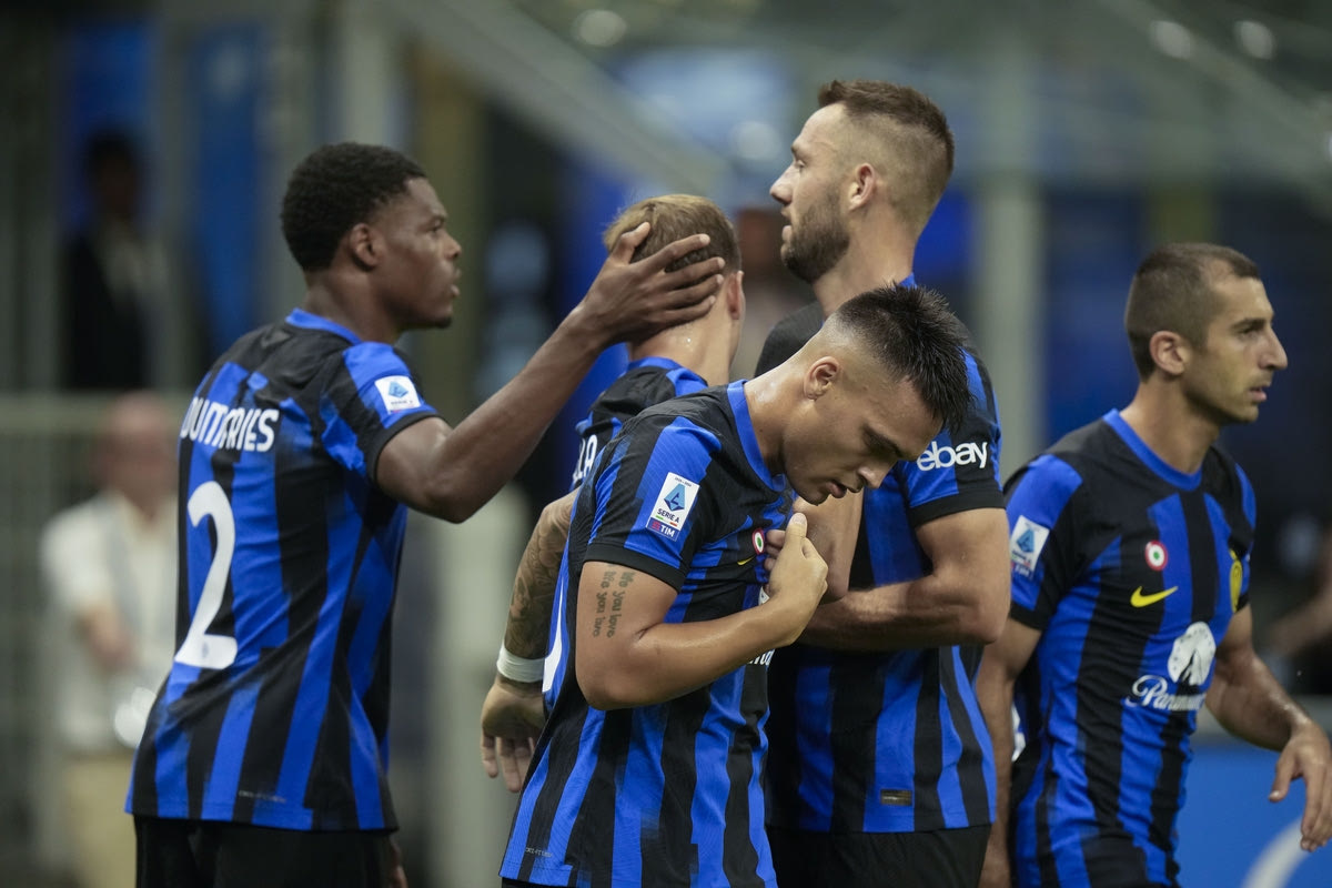Οι παίκτες της Ίντερ πανηγυρίζουν γκολ που σημείωσαν κόντρα στη Μόντσα για τη Serie A 2023-2024 στο "Τζιουζέπε Μεάτσα", Μιλάνο | Σάββατο 19 Αυγούστου 2023 © 2023/Luca Bruno/AP IMAGES