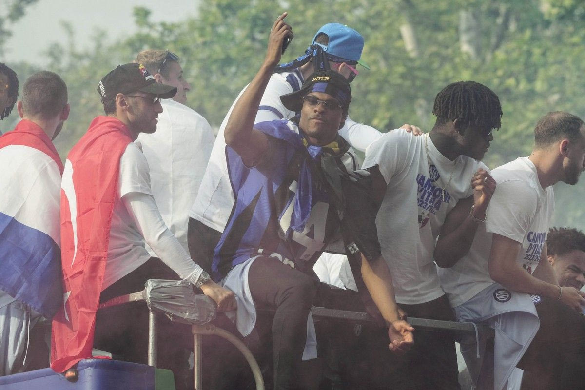 Ο Ντένζελ Ντάμφρις θέλησε να ξεσηκώσει τους οπαδούς της Ίντερ κατά τη διάρκεια της παρέλασης των παικτών των νερατζούρι για τον εορτασμό του πρωταθλήματος και το έκανε μέσα από ένα ακραίο "πείραγμα" προς τον Τεό Ερναντέζ της Μίλαν.