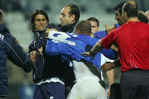 Απίστευτες καταστάσεις στην Νίκαια! Ο Πουλόπουλος που είχε γίνει αλλαγή όρμηξε από τον πάγκο να χτυπήσει τον Επαλέ. Στην συνέχεια ο Καμερουνέζος απάντησε με μπουνιές! Τα χειρότερα ήρθαν στην συνέχεια όταν οπαδός μπήκε στο γήπεδο και χτύπησε τον επόπτη κ. Κόττορo! Ο τελευταίος μεταφέρθηκε με φορείο έξω από το γήπεδο και στην συνέχεια στο νοσοκομείο. Ήπια κάκωση κεφαλής η διάγνωση για τον άτυχο επόπτη που θα υποβάλει μήνυση.