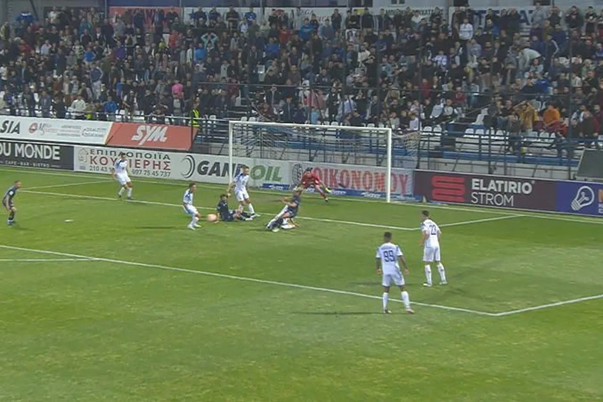 Η μπάλα βρήκε στο οριζόντιο δοκάρι και εν συνεχεία κατέληξε στα δίχτυα για το 2-0 των Νικαιωτών στο 37′.