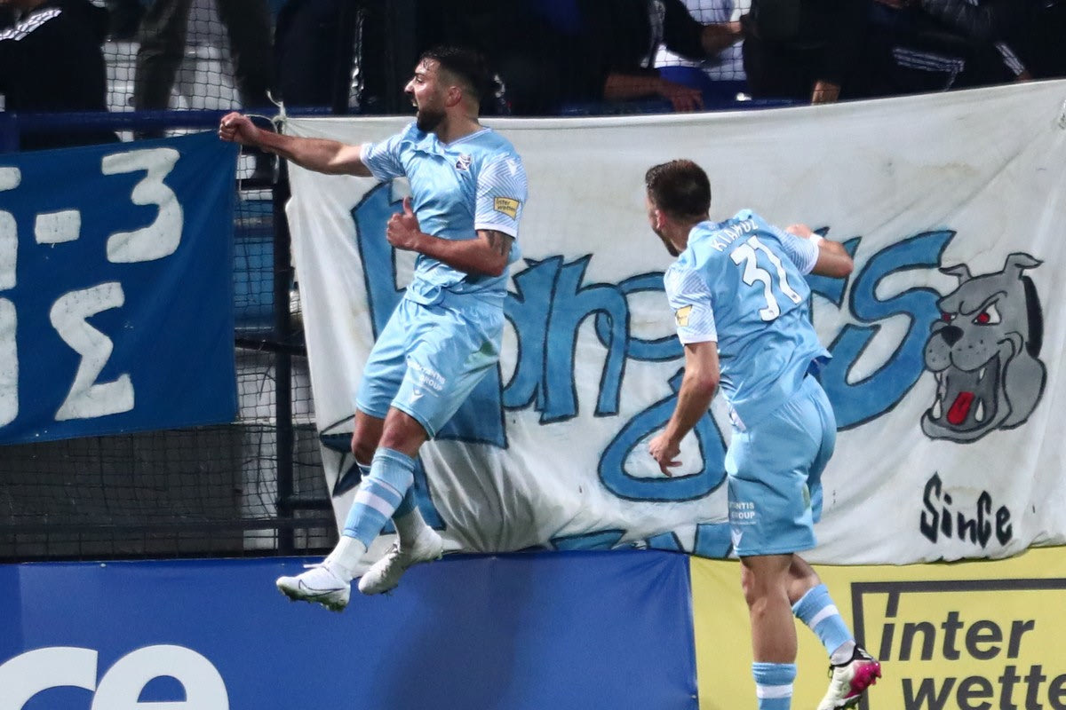 Ο Άοσμαν πανηγυρίζει γκολ του στο Ιωνικός - ΠΑΟΚ