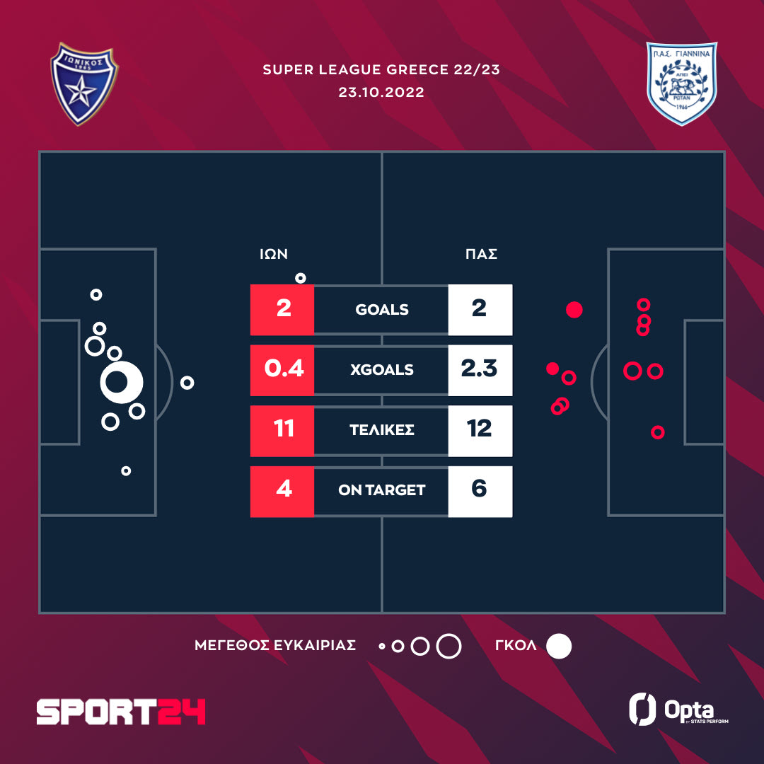 Οι δύο ομάδες είχαν από ένα ημίχρονο, με τον Ιωνικό να είναι ανώτερος στο πρώτο μέρος και τον ΠΑΣ να ισορροπεί στο δεύτερο. Οι δύο ομάδες παραμένουν χαμηλά στη βαθμολογία, με τον Ιωνικό να φτάνει τους τρεις βαθμούς και την ομάδα των Ιωαννίνων να έχει τρεις περισσότερους.